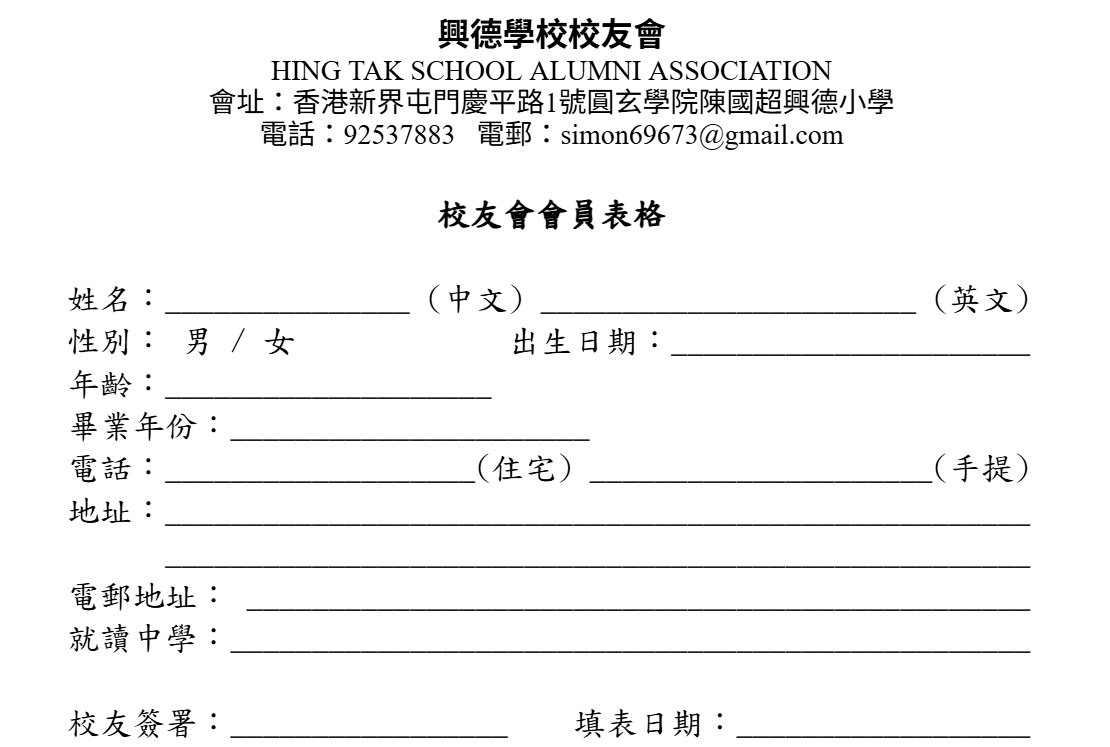 (二) 可寫支票:抬頭「興德學校校友會」寄回『圓玄學院陳國超興德小學』